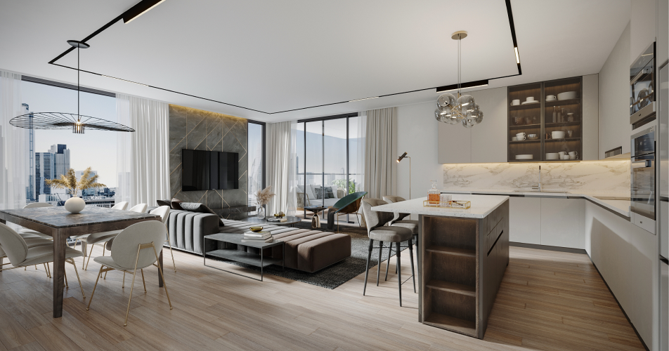במסגרת התכנון הייחודי, כל דירה תיהנה מנוף פנורמי של הים באמצעות חלונות “רצפה עד תקרה”, ומרפסות מעוצבות כהרחבה של המרחב הפנימי המטשטשות את הגבולות שבין הפנים לחוץ.